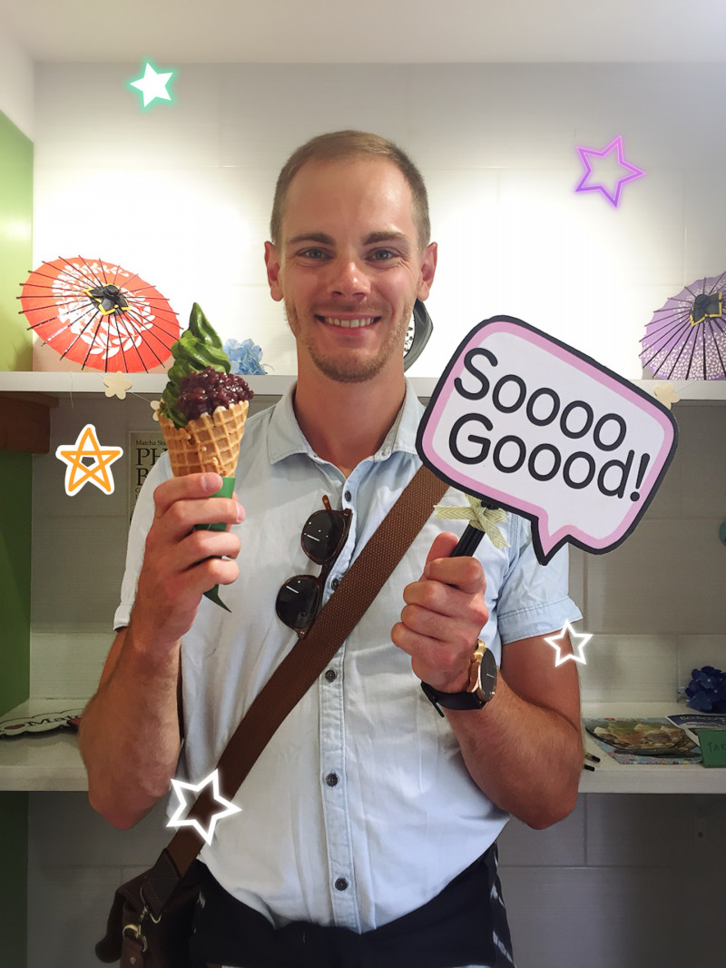 Throughout Europe mathca is a popular drink, but I’ve never had matcha as rich and tasty as this before! There are 3 different flavors to choose from, which is great. Today I went with the matcha ice cream, but also got some adzuki in there which goes great with the matcha.